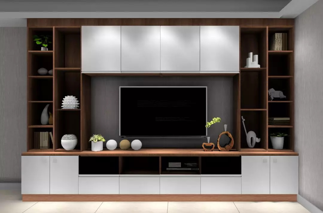 一款簡(jiǎn)潔大氣的電視背景墻,為給客廳活動(dòng)留下更多空間與可能性。