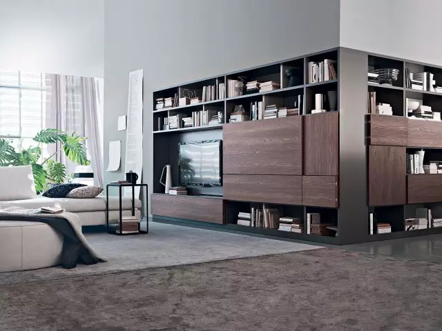 一般來(lái)說(shuō),整面墻的書(shū)柜可以與電視合二為一,也可以安置于沙發(fā)背后的墻面。它不僅具有延伸視線的功能,還能起到不錯(cuò)的收納與裝飾效果。