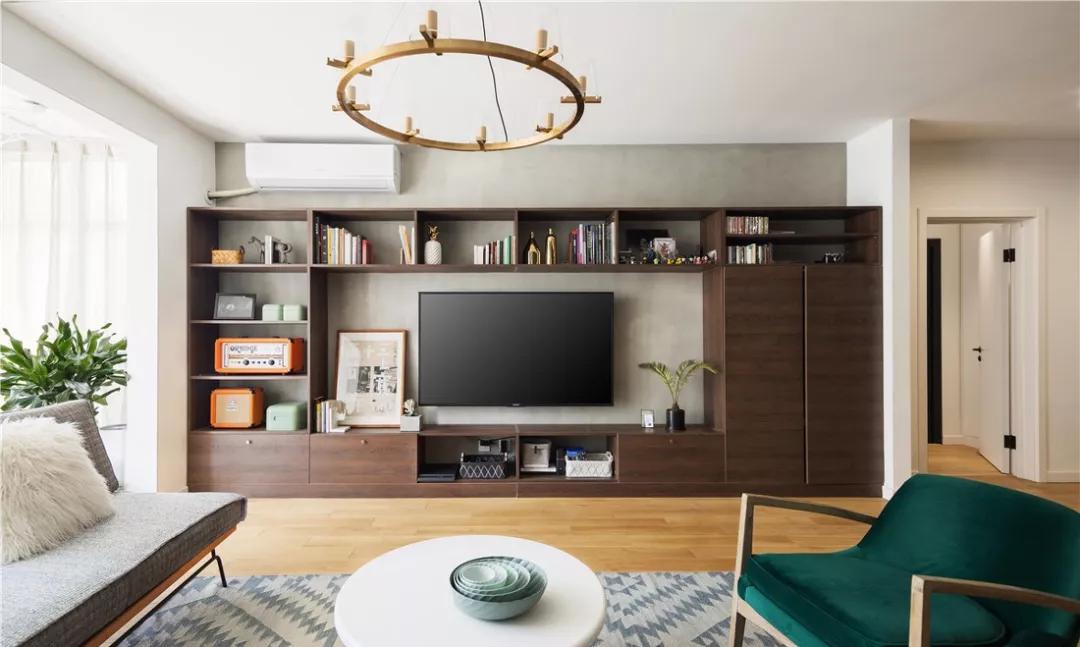諸如此類(lèi),還有許多辦法可以讓電視背景墻做得更有藝術(shù)范兒,比如一整面書(shū)柜。