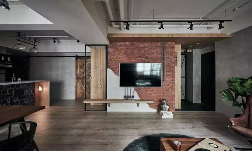 工業(yè)復(fù)古風(fēng)的標(biāo)配,把管線、橫梁、空調(diào)設(shè)備等都暴露出來,讓這些縱橫交錯(cuò)的粗獷線條賦予空間最不羈的靈魂。