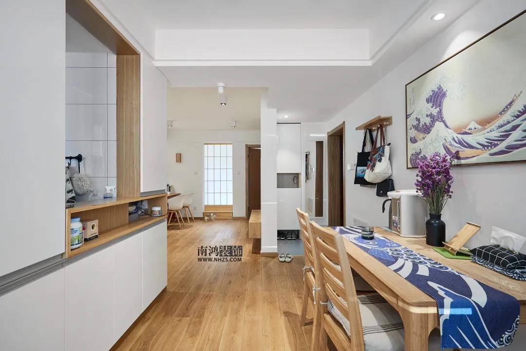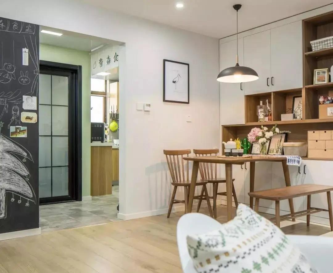 以白色背景為主,搭配木質(zhì)家具的日式風餐廳,通過原木風的餐桌椅和木白結(jié)合的餐邊柜,來展現(xiàn)日系的治愈基調(diào)。