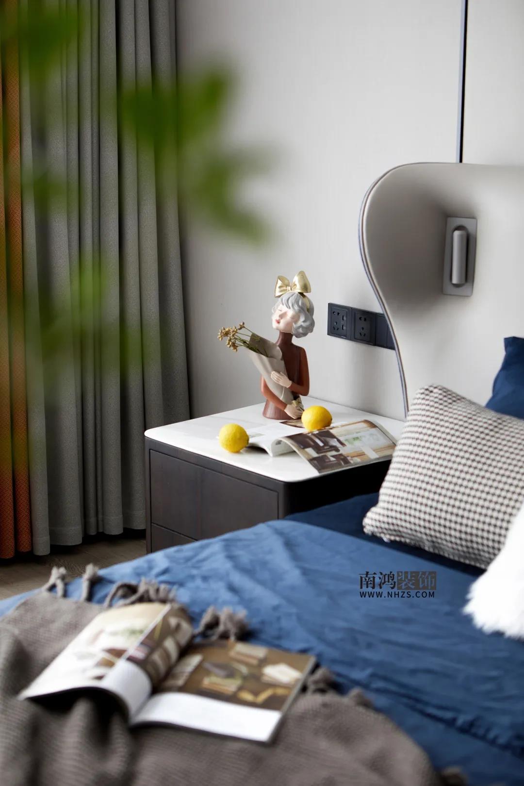 01. 客戶需求 本案的男業(yè)主是名律師精英,對(duì)待工作對(duì)待生活皆是嚴(yán)謹(jǐn)認(rèn)真、一絲不茍,對(duì)家的期待是簡(jiǎn)約時(shí)尚,女業(yè)主作為家庭主婦,則更注重儲(chǔ)物空間一些。 02. 裝飾亮點(diǎn) 本案以石材,木飾面,巖板,不銹鋼等為主要用材建構(gòu)輕奢外形,色彩上,在簡(jiǎn)潔自在的白、木色基礎(chǔ)上,添加橙、黃、紫、藍(lán)等個(gè)性顏色,達(dá)到亮眼卻并不突兀的平衡。 03. 戶型分析 女業(yè)主對(duì)收納要求很高,而且家有二胎,因此設(shè)計(jì)師在原有戶型結(jié)構(gòu)的基礎(chǔ)上增加了非常多的儲(chǔ)物空間,主臥有兩個(gè)大型衣帽間,南陽(yáng)臺(tái)利用轉(zhuǎn)角區(qū)域增加雜物間,另外兩間次臥也相應(yīng)做好了收納儲(chǔ)備。 04. 設(shè)計(jì)落地 玄關(guān),以簡(jiǎn)潔有序的布置打造開(kāi)闊大氣之感。端景臺(tái)上擺放金框裝飾畫(huà),小馬擺件與清新花束,構(gòu)成藝術(shù)雅觀。左側(cè)玄關(guān)柜滿足基本收納,隱形門(mén)背后即是次臥空間。 玄關(guān)轉(zhuǎn)進(jìn)來(lái)是劃分客餐廳的走廊,埡口墻面以木皮包裹,溫柔啟開(kāi)家的全部面貌,又與入戶區(qū)形成呼應(yīng),保證了空間的整體感。 客廳以白灰色為基調(diào)展現(xiàn)低調(diào)輕奢氛圍感,輔以鮮活的愛(ài)馬仕橙點(diǎn)綴,明朗干凈之余更顯前衛(wèi)氣息。 沙發(fā)背景墻用淺色木飾面結(jié)合墻布并以黑色金屬勾邊,界定區(qū)域的同時(shí)又有著很好的視覺(jué)延伸感。 頂面無(wú)主燈設(shè)計(jì),保持簡(jiǎn)潔質(zhì)感。電視背景墻延伸出來(lái)做一塊黑色開(kāi)放式收納區(qū)域,方便個(gè)性展示。 客廳望向餐廳。餐廳外口兩側(cè)擺放到頂?shù)碾p面玻璃門(mén)酒柜,除了做隱形隔斷之外,還可以改善空間采光。 餐廳整體現(xiàn)代感十足,墻面以大理石、木格柵、木飾面、裝飾畫(huà)等多種元素裝飾,豐富而立體。黑色金屬線條勾勒?qǐng)A形吊頂,空間更多一層高級(jí)感。 低調(diào)至簡(jiǎn)的灰色系臥房中,點(diǎn)綴靜謐的深藍(lán)與活力的橙色,優(yōu)雅格調(diào)呼之欲出。床頭背景墻做了前后關(guān)系處理并暗藏?zé)魩В黾右曈X(jué)上的層次感。 設(shè)計(jì)的語(yǔ)言是神奇的,它賦予空間特有的情感。每一種顏色的搭配,每一件物品的取舍,都是我們對(duì)家、對(duì)人、對(duì)生活方式的理解與認(rèn)知。 次臥做榻榻米房,完善收納的同時(shí)提供書(shū)房與娛樂(lè)休閑室的功能,多種色彩碰撞,呈現(xiàn)趣味感十足的活力空間。 兒童房,以灰藍(lán)為主的整體色調(diào)更趨于穩(wěn)重,象征著父母對(duì)孩子未來(lái)成長(zhǎng)的一種期待??蓯?ài)的抱枕、床頭擺件與木馬搖椅,為房間注入活潑童趣。 主衛(wèi),潔白石質(zhì)瓷磚帶來(lái)明凈觀感,雙臺(tái)盆提升日常使用效率,淋浴區(qū)地面做防滑處理,墻面設(shè)置壁龕方便收納。 次衛(wèi)干濕分離,內(nèi)里淋浴區(qū)墻面瓷磚做不規(guī)則切割,打造美觀度與實(shí)用性兼?zhèn)涞臅r(shí)尚衛(wèi)浴空間。