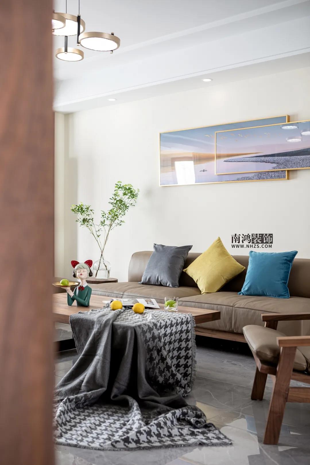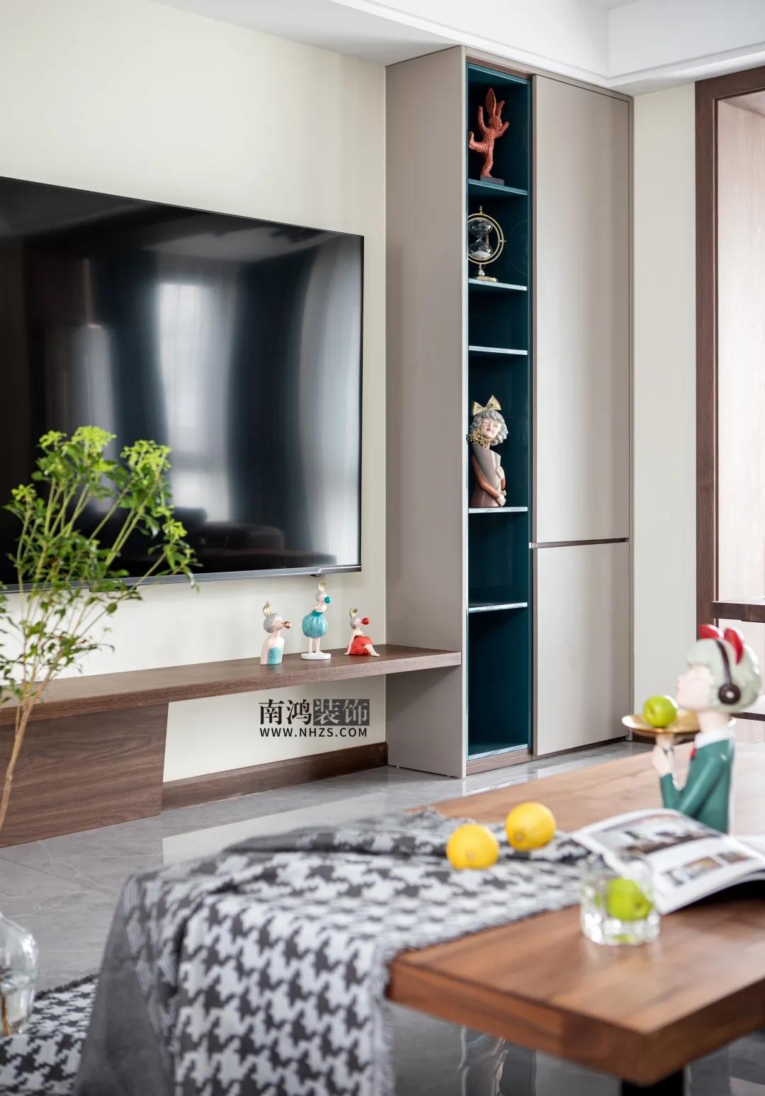 01. 客戶需求 本期新房的主人是一對(duì)特別有愛的夫妻,夫婦倆的性格、愛好都無比契合,喜愛讀書、古箏,閑來會(huì)經(jīng)常去各處古鎮(zhèn)走走,對(duì)傳統(tǒng)文化有著濃厚興趣。他們希望自己的家是簡(jiǎn)單而實(shí)用,休閑而又溫馨。 02. 裝飾亮點(diǎn) 原本基調(diào)定的是休閑北歐風(fēng)格,但由于屋主本人更心水胡桃木的家具,所以最后搭配出來的效果會(huì)比一般的現(xiàn)代風(fēng)更厚重一些。 為了削減家具給空間帶來的沉重感,增強(qiáng)家的溫馨氣息,設(shè)計(jì)師在空間中點(diǎn)綴多種活力跳色以及可愛的掛畫、飾品,有利于烘托出房屋的休閑氛圍。 03. 戶型分析 1、打通北陽臺(tái)與餐廳,擴(kuò)大餐廳面積并改善采光。 2、客房區(qū)域增加衣帽間,并在床后做了一排薄的收納柜,提升儲(chǔ)物量的同時(shí)沒有擠占太多空間。 04. 設(shè)計(jì)落地 客廳與陽臺(tái)打通,讓陽光能恣意地傾灑進(jìn)來。室內(nèi),胡桃木色的家具較為沉靜,卻也容易流露出呆板,我們便添加入清新的軟裝、可愛的擺件進(jìn)行中和,豐富色彩,活躍氛圍。 墻面米白色的乳膠漆呈現(xiàn)明快而溫馨的空間感,電視背景墻一側(cè)是通往書房的隱形門,另一側(cè)則打造一排收納柜用以展示和儲(chǔ)物。 客廳望向餐廳的角度可以看到玄關(guān)的位置,矮鞋柜+木格柵的組合,提供基本鞋物收納的同時(shí)保證室內(nèi)一定隱私性,是小玄關(guān)的幾個(gè)最佳打造方案之一。 餐廳區(qū)域圍繞中心的方桌展開,灰白結(jié)合的窗簾布素雅柔凈,照應(yīng)著屋內(nèi)的雅致景觀。成套的胡桃木餐桌椅擁有親切的自然感,以和諧的比例、純粹的素材展現(xiàn)著優(yōu)越的品質(zhì)。 廚房,灰色石英石臺(tái)面方便清潔,淺灰藍(lán)的櫥柜打破色彩單調(diào)性,保留視野清爽感。底部柜體做分格處理,細(xì)化收納,便于整理。 過道轉(zhuǎn)角口的弧度弱化了空間銳角,圓滑且充滿親近感。天藍(lán)的墻體色塊呼應(yīng)室內(nèi)軟裝,增加區(qū)域?qū)哟呜S富性。 少量金色元素的應(yīng)用,能在空間中起到畫龍點(diǎn)睛的作用,精致感與高級(jí)感便應(yīng)運(yùn)而生。 主臥陽臺(tái)特意抬高做了一塊休閑區(qū),放上主人最心愛的古箏,輕彈一曲高山流水,聲聲琴語,足以撫慰日漸浮躁的心靈。 恰到好處的配色與利落明晰的線條讓臥室看起來是那么簡(jiǎn)潔干凈,復(fù)古藍(lán)烤漆衣柜門搭配金色把手,細(xì)節(jié)間充滿著考究質(zhì)感。 臥室是心靈的安放之所,不需要多么繁復(fù)的裝飾,簡(jiǎn)單舒適就好。 客臥背景墻打造一排深度約32公分的柜子用來收納書籍與展示各種有趣擺件,寧靜的色調(diào)最適宜勾勒安心入睡的場(chǎng)景。 書房沿窗安置吧臺(tái)桌椅,靜沐著暖陽開啟一天的工作時(shí)光??臻g內(nèi)兩扇移門分別由愛馬仕橙仿皮紋和玻璃材質(zhì)打造,鏡面可以最大限度放大空間。 主衛(wèi),淺色的墻地磚看起來明凈整潔,白色石紋臺(tái)面搭配深灰臺(tái)盆柜,對(duì)比色的使用讓空間更加鮮活。