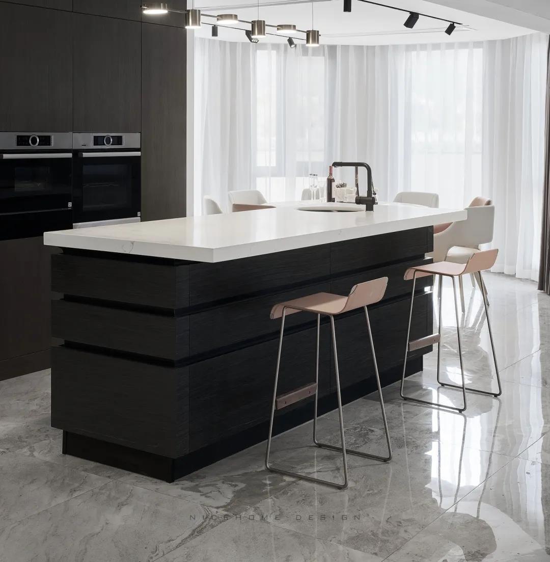 夾層為寬敞的餐廚區(qū)域,中西合璧,空間互動感強(qiáng),動線流暢。