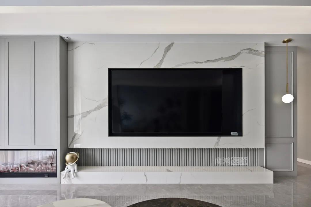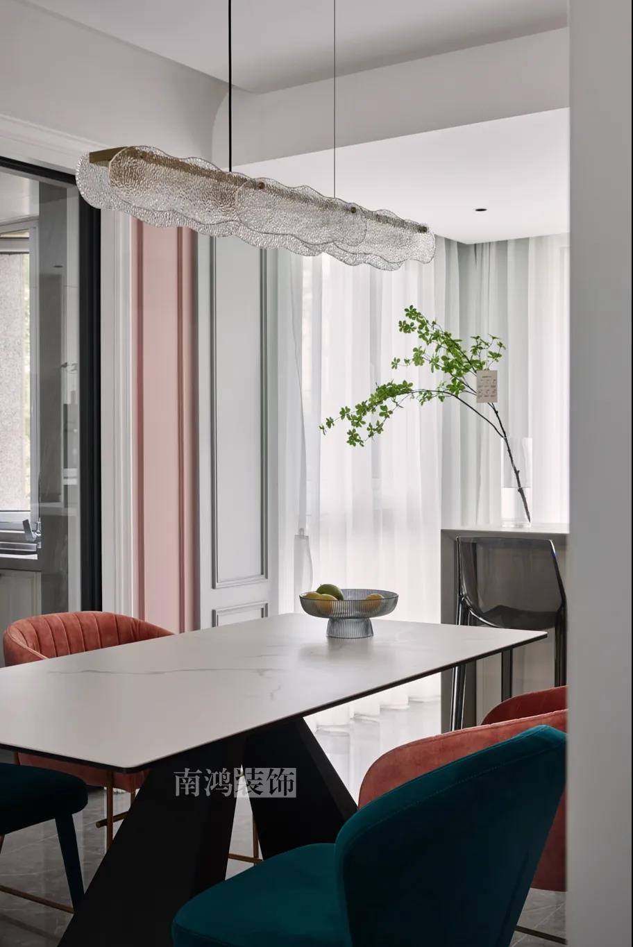 01. 客戶(hù)需求 本案的屋主非常喜歡小美式風(fēng)格的清新自在,又向往著現(xiàn)代簡(jiǎn)約所傳達(dá)的生活理念,所以設(shè)計(jì)師依照他的喜好,將兩種風(fēng)格元素巧妙糅合,讓整體空間在浪漫優(yōu)雅的情調(diào)中傳遞出主人的獨(dú)特品味。 02. 裝飾亮點(diǎn) REFRESHING 擯棄了粗暴的材質(zhì)堆砌,將小美式與現(xiàn)代簡(jiǎn)約巧妙結(jié)合在一起,色調(diào)上選用低飽和度的高級(jí)灰與柔和的莫蘭迪色,致力于呈現(xiàn)一個(gè)唯美純粹、具備高級(jí)感的美學(xué)空間。 03. 戶(hù)型圖 04. 設(shè)計(jì)落地 客 廳 客廳以高級(jí)灰為主基調(diào),低飽和度的特性使得它具備很強(qiáng)的包容性。 電視背景將美式的經(jīng)典線(xiàn)條護(hù)墻與利落的大理石磚組合,沙發(fā)背景則做了木護(hù)墻隱形門(mén)處理,配以簡(jiǎn)單干凈又不減細(xì)節(jié)的吊頂,既實(shí)現(xiàn)了兩種不同風(fēng)格元素的結(jié)合,又能讓造型為居家功能服務(wù)。 靠近陽(yáng)臺(tái)擺放一把亮麗單椅,電子壁爐內(nèi)躍動(dòng)著溫暖的火苗,成為美妙的休憩一角。 節(jié)制而有意蘊(yùn)的設(shè)計(jì)手法,賦予空間最具詩(shī)意的內(nèi)涵表達(dá)。 開(kāi)放的領(lǐng)域中,客餐之間連貫而又相對(duì)獨(dú)立,在敞闊的尺度中讓主人感受到家的舒適。 餐 廳 餐廳,是讓人走近便頓覺(jué)眼前一亮的空間所在?;ǘ浒銒赡鄣臒煼凵?,是莫蘭迪色系中超有存在感的一派,又如晚霞,純凈美好,撲面而來(lái)便是夢(mèng)幻與浪漫的氣息。 餐廳處還添加入西廚的功能,讓廚房實(shí)現(xiàn)多功能化,同時(shí)弱化了原區(qū)域的狹長(zhǎng)感。 過(guò) 道 “人生忽如寄,莫辜負(fù)茶、湯和好天氣?!鼻謇势胶偷倪^(guò)道景致,自給人一種寧?kù)o的深邃感受。 臥 室 臥室刪繁就簡(jiǎn),通過(guò)淺色的床品與干凈的硬包背景,營(yíng)造簡(jiǎn)約純粹的清韻。 兒童房是一個(gè)多姿多彩的空間,活潑的星星圖案,多種低飽和色調(diào)搭建的背景墻面,整體氣氛輕松愉悅,作為一個(gè)成長(zhǎng)型空間來(lái)說(shuō)也充滿(mǎn)著可塑性。 衣 帽 間 純白的視象,抽離了所有多余的表達(dá),兩側(cè)衣柜默默擔(dān)當(dāng)著收納的使命,井然有序地包容著一切冗雜。
