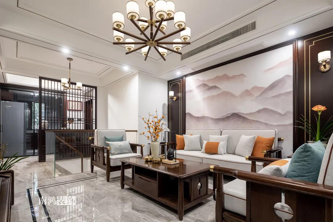 對(duì)稱(chēng)、留白、方圓,204㎡新中式設(shè)計(jì),勾勒古典雅致的國(guó)風(fēng)神韻