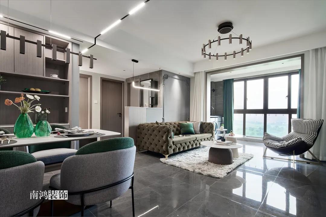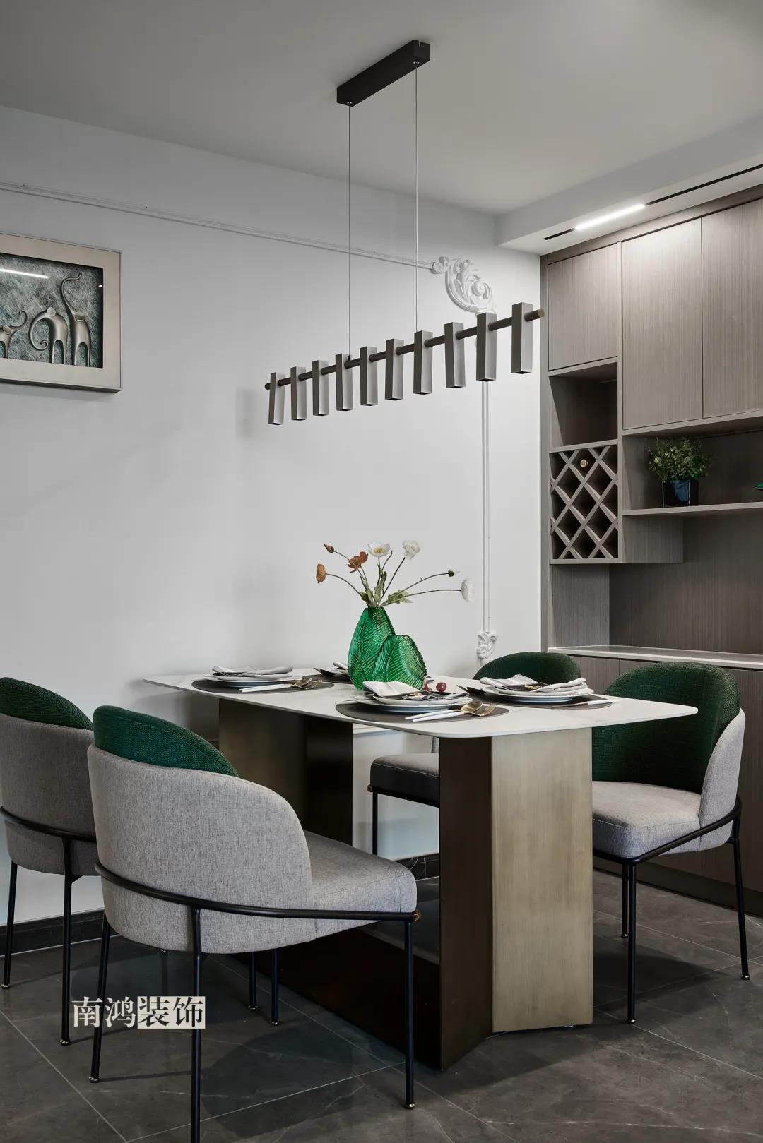 【項(xiàng)目·信息】 地址 / 世貿(mào)西西湖 戶型 / 三室兩廳 面積 / 91㎡ 風(fēng)格 / 現(xiàn)代法式 設(shè)計(jì)施工 / 浙江南鴻裝飾 本案為91㎡現(xiàn)代法式風(fēng)格作品?,F(xiàn)代法式摒棄傳統(tǒng)法式繁復(fù)、冗雜的裝飾造型與甜膩的色澤,通過(guò)淡雅的色調(diào),簡(jiǎn)潔的幾何線條和典雅時(shí)尚的陳設(shè)軟裝,來(lái)打造更符合現(xiàn)代人喜好的生活空間。 業(yè)主夫妻倆,一位是性格沉悶的工程男,一位是熱情開(kāi)朗的設(shè)計(jì)女,彼此志趣相投,性格互補(bǔ),優(yōu)雅的法式,給這個(gè)甜蜜小家庭增添了更多美妙情趣~ ▲原始結(jié)構(gòu)圖 ▲平面設(shè)計(jì)圖 ①衛(wèi)生間做干濕分離。 ②兒童房的門洞方向更改,完整電視背景墻效果。 ③主臥和次臥交換位置,次臥陽(yáng)臺(tái)打通。 ④縮小主衛(wèi)面積,墻體后退得以嵌入一個(gè)大衣柜。 入戶門進(jìn)來(lái)即見(jiàn)餐廳。戶型面積不大,公區(qū)域都盡量打開(kāi)讓視野更開(kāi)闊。 硬裝整體簡(jiǎn)潔,墻面可見(jiàn)石膏線花紋裝飾,借此強(qiáng)化一定法式空間意象。餐桌椅、吊燈的造型選擇也都偏現(xiàn)代,空間中奢與簡(jiǎn)的分寸把握得恰到好處。 綠色作為本案的點(diǎn)綴色,可以說(shuō)貫穿了幾乎各個(gè)分區(qū)之中,鮮活的生命力讓人過(guò)目難忘。 客餐廳一體式設(shè)計(jì)是小戶型的常見(jiàn)選擇,也更符合現(xiàn)代人的生活習(xí)慣?;野字魃3终w低調(diào),局部墻面以飽和度高的綠色乳膠漆涂刷,空間被提亮不少。 客廳采光良好,沙發(fā)背景墻連接干區(qū)的位置做一個(gè)小的半高柜,提升空間利用率。軟裝家具布置則用簡(jiǎn)潔的設(shè)計(jì)手法將法式的古典優(yōu)雅和現(xiàn)代的簡(jiǎn)約時(shí)尚相結(jié)合,使得空間既有休閑感受,又不乏藝術(shù)氣息。 經(jīng)過(guò)設(shè)計(jì)調(diào)整,電視背景墻的效果更加完整,深淺色調(diào)做左右兩塊分界,以石膏線裝飾則更顯精致。 拱形門洞也被應(yīng)用在這里,作為歷史悠遠(yuǎn)的一種經(jīng)典建筑元素,本身就很契合各種帶古典意味的家居風(fēng)格。 廚房以長(zhǎng)虹玻璃門隔絕油煙,保證內(nèi)部的私密性,也實(shí)現(xiàn)了采光的通透感。冰箱被移至過(guò)道,釋放內(nèi)部更多空間。 廚房采用U型布局,動(dòng)線流暢,烹飪區(qū)、操作臺(tái)和洗滌區(qū)都有各自獨(dú)立的空間,互不打擾。 主臥,青草綠墻布做背景裝飾,留白保持簡(jiǎn)約調(diào)性,一幅婚紗照訴說(shuō)著夫妻二人簡(jiǎn)簡(jiǎn)單單、明明白白的甜蜜愛(ài)情故事。 光源除主燈外,床頭兩側(cè)各有布置,一邊長(zhǎng)臂燈一邊吊燈的不對(duì)稱設(shè)計(jì),讓臥室空間顯得更加有趣,金屬材質(zhì)呈現(xiàn)輕奢美感。 長(zhǎng)輩房的背景、色彩選擇需要貼合老人的喜好,選用橙色主色,帶來(lái)如陽(yáng)光般的燦爛、溫暖感受。 夫妻二人目前還沒(méi)有孩子,這個(gè)房間預(yù)備做以后的兒童房,布置相對(duì)簡(jiǎn)單,方便將來(lái)調(diào)整。 衛(wèi)生間將干濕區(qū)域分離,洗漱臺(tái)盆柜、壁柜與旁邊打造出的半高柜體可將瓶瓶罐罐都收入其中,保證視覺(jué)上的清爽。