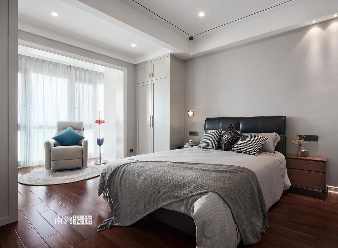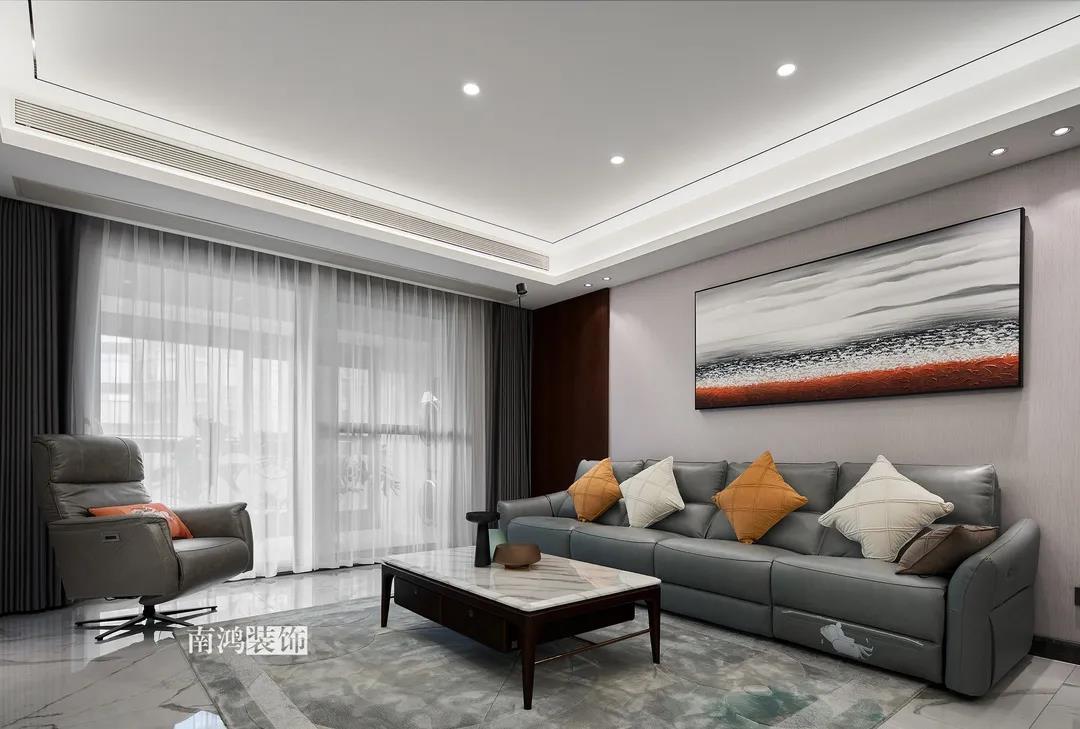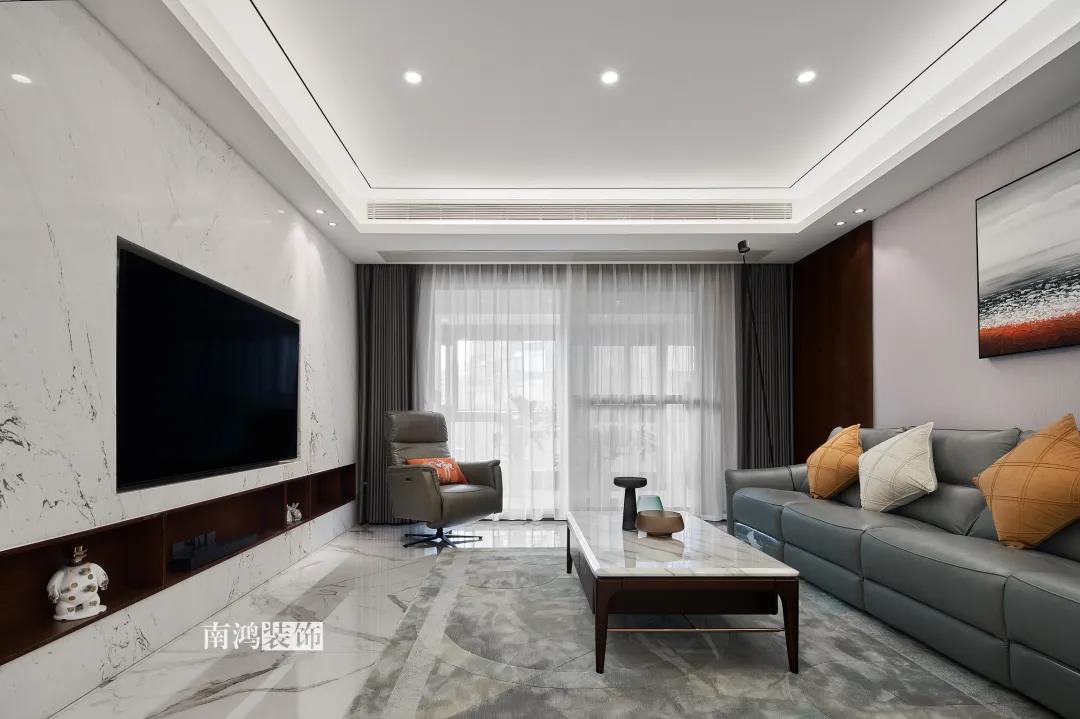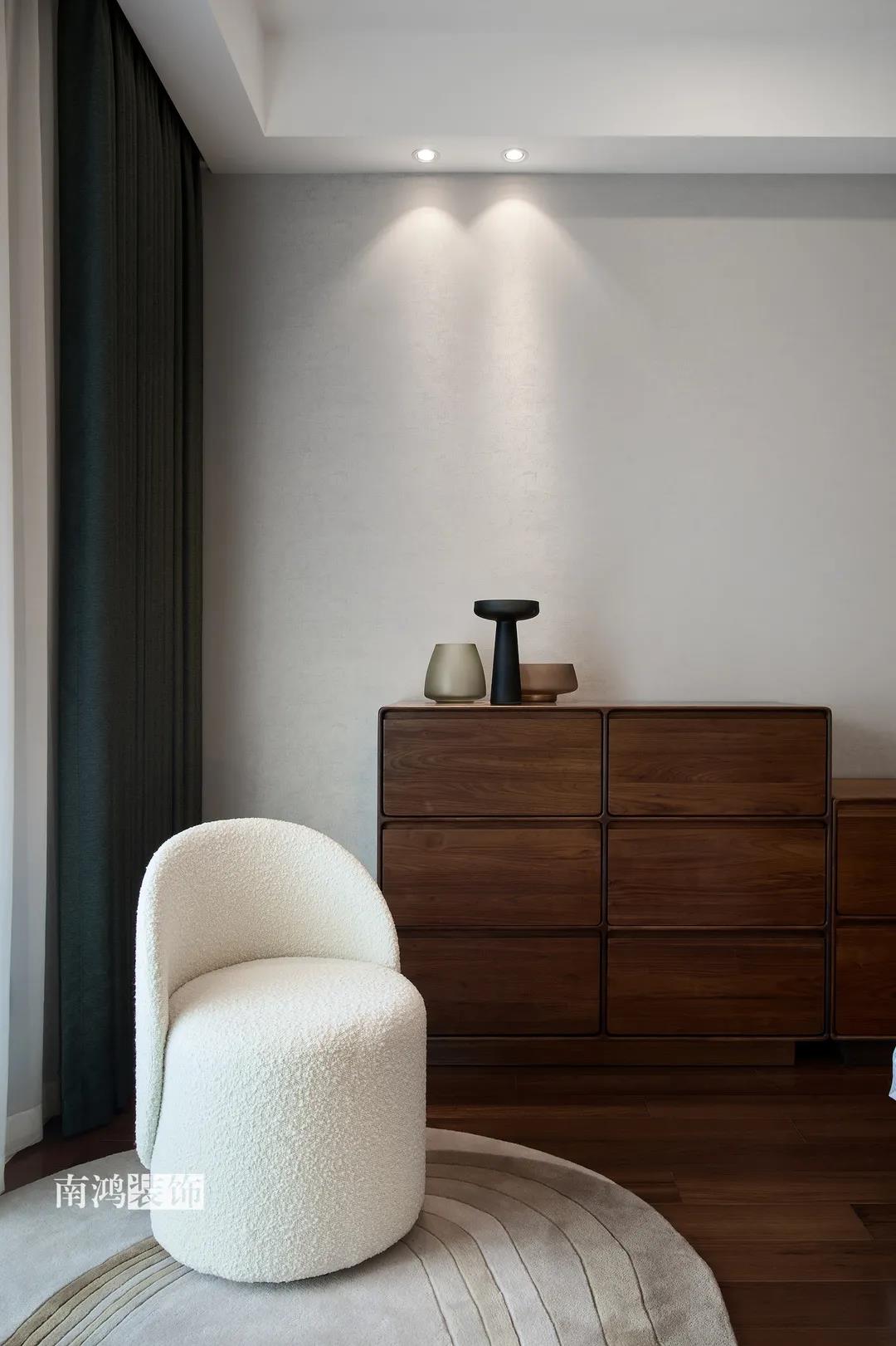 業(yè)主是一對(duì)年齡45歲左右的夫妻,事業(yè)穩(wěn)定,家庭幸福。夫妻二人熱衷各類(lèi)美食料理,所以對(duì)家里廚房的設(shè)計(jì)更加重視。 總體來(lái)看,戶型面積很大,三室兩廳的格局留給了公區(qū)域相當(dāng)寬敞的可使用空間。設(shè)計(jì)與選材上秉承現(xiàn)代風(fēng)格的原則,強(qiáng)調(diào)理性而寧?kù)o的室內(nèi)氛圍,穩(wěn)重的木料與明朗的石材相配,實(shí)現(xiàn)物質(zhì)與精神的雙重安放。 1、正門(mén)對(duì)廚房,以豎條木格柵做隔斷。 2、客餐廳兩塊區(qū)域中間做一個(gè)書(shū)吧用以分隔空間,增加層次性。 3、做開(kāi)放式廚房,餐桌增添島臺(tái),提升空間利用率與家人互動(dòng)性。 4、北陽(yáng)臺(tái)和女兒房打通,擴(kuò)充女兒房的使用面積。 玄關(guān) ENTRANCE 入戶玄關(guān)以深色的木格柵阻隔視線,既是風(fēng)水上的考慮,又很好保護(hù)了室內(nèi)隱私。地面通鋪白色瓷磚串聯(lián)內(nèi)外,關(guān)于家的第一印象便在此構(gòu)建。 細(xì)木條元素自帶美感,光影的變幻交錯(cuò)間,涌動(dòng)出不凡的藝術(shù)張力。 客廳 LIVING ROOM 低飽和度色彩與明朗的線條,傳達(dá)著主人對(duì)簡(jiǎn)約品質(zhì)生活的追求和向往。全屋頂面統(tǒng)一做無(wú)主燈裝飾,嵌入6毫米黑色金屬條,極細(xì)的線條感透出設(shè)計(jì)的巧思與靈動(dòng)之美。 空間以簡(jiǎn)潔敞亮的硬裝基礎(chǔ),搭配素凈的顏色與舒適的軟裝,深色木質(zhì)元素在其間跳躍點(diǎn)綴著,中和剛冷的石材光澤。 電視機(jī)嵌入大理石背景,墻面紋理與地呼應(yīng),下開(kāi)收納格取代傳統(tǒng)電視柜的位置,立面干凈,層次更在一深一淺中凸顯。 視線無(wú)論由無(wú)主燈頂面還是地面延展,均是順暢無(wú)比,大戶型的氣派一覽無(wú)余。 客餐之間由小書(shū)吧自然過(guò)渡,可以當(dāng)作一個(gè)開(kāi)放式的書(shū)房使用,讀書(shū)、辦公、品茶、娛樂(lè)等多重功能恣意交互,單一空間由此衍生出諸多使用情境。 餐廳 DINING ROOM 餐廳與門(mén)廳相鄰,開(kāi)放式餐廚設(shè)計(jì)滿足主人的所有美好想象。餐桌的胡桃木色與島臺(tái)、廚房的淺色形成對(duì)比,雅致的古韻與鋒利的現(xiàn)代感交匯,成為這個(gè)家個(gè)性的一面展示。 清晰筆直的黑白線條拉伸空間縱深感的同時(shí),也讓客廳和餐廚的視野更顯朗闊。 溫潤(rùn)的胡桃木紋理典雅大方,空間的詩(shī)意氛圍在簡(jiǎn)約的線條層次中被有力烘托出來(lái)。 廚房 KITCHEN 既可以擴(kuò)充廚房操作臺(tái)面,又能當(dāng)吧臺(tái)使用的島臺(tái),和餐桌結(jié)合在一起,大大增加了使用頻率,搭配上款式輕盈的吧臺(tái)凳,毫無(wú)疑問(wèn)是餐廚區(qū)的顏值與實(shí)力擔(dān)當(dāng)。 開(kāi)放式布局將廚房和餐廳融為一體,潔白柜體把嵌入式電器隱含其中,寬大的臺(tái)面足以滿足日常烹飪需求,環(huán)形的動(dòng)線則可以讓人穿梭其中行走自如。 臥室 BEDROOM 主臥背景墻以灰色墻布和木飾面結(jié)合,細(xì)膩紋理展現(xiàn)有機(jī)的溫暖、純凈,燈光被有序在墻頂面安置,讓人倍感安神,又不失高雅格調(diào)。 床頭壁燈的瑩瑩微光,帶來(lái)夜的凝思。床尾放一把小羊羔絨椅,圓潤(rùn)線條惹人喜愛(ài)。光影之間,居室氣質(zhì)自顯。 寧?kù)o灰是次臥的主導(dǎo)色,納入的陽(yáng)臺(tái)讓室內(nèi)采光更加充足,滿滿當(dāng)當(dāng)?shù)墓耋w則將空間的收納力放大到極致。 陽(yáng)臺(tái)被細(xì)心布置為休閑一角,為主人譜寫(xiě)出愜意的生活橋段。 衛(wèi)生間 BATHROOM 衛(wèi)生間整體保持極簡(jiǎn)的格調(diào),黑白配色更顯潔凈,臺(tái)盆柜纖巧落地,視覺(jué)上倍感輕盈。