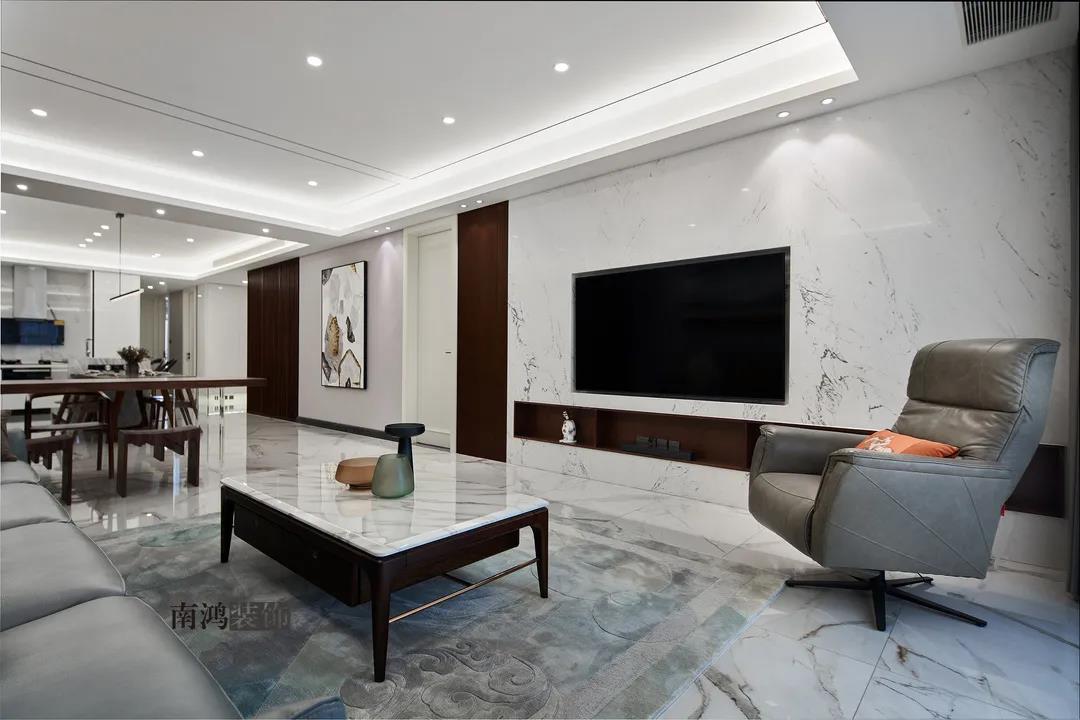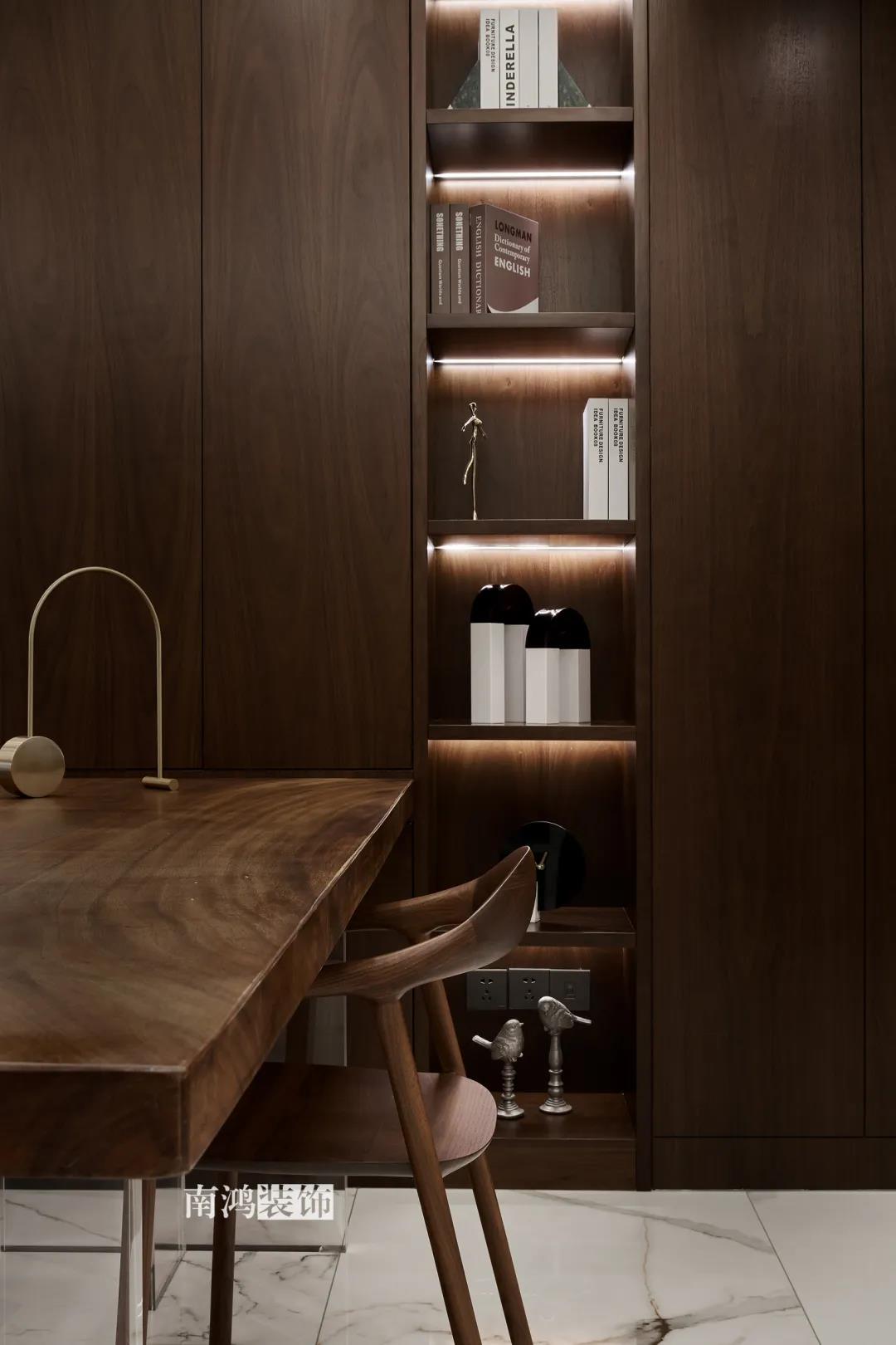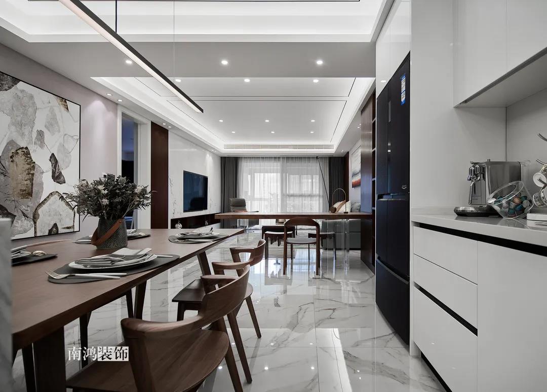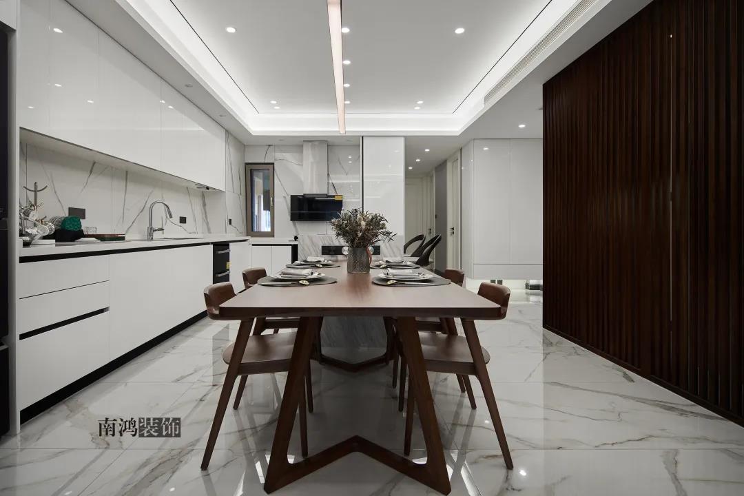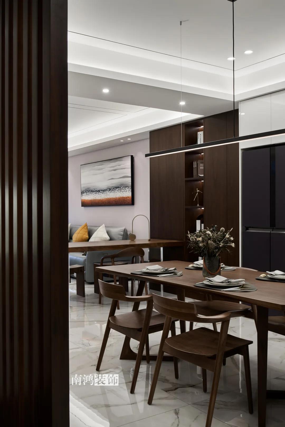 192㎡三室兩廳,胡桃木引領(lǐng)潮流,開(kāi)放式餐廚是真的香!
